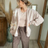 Avec sa coupe légèrement oversize et ses finitions travaillées, le cardigan Azia beige se porte aussi bien fermé comme un pull, qu’ouvert sur une chemise ou un top plus fin.