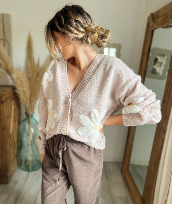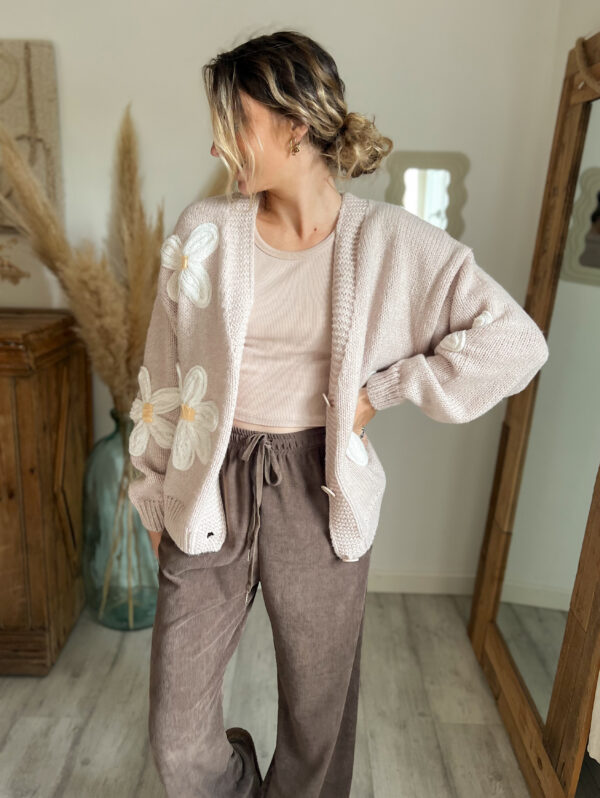 ✨ Retrouvez le cardigan femme beige fleur porté en vidéo et associée à différents looks sur Instagram @moonbow.eshop.