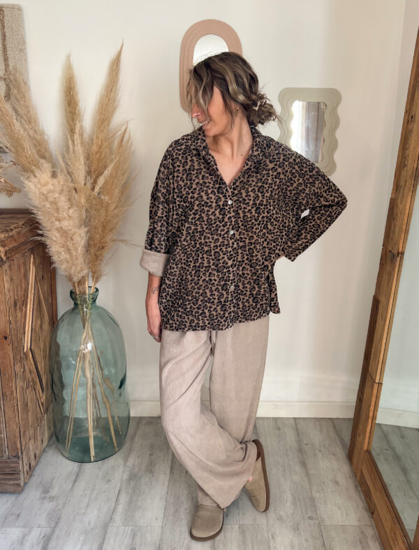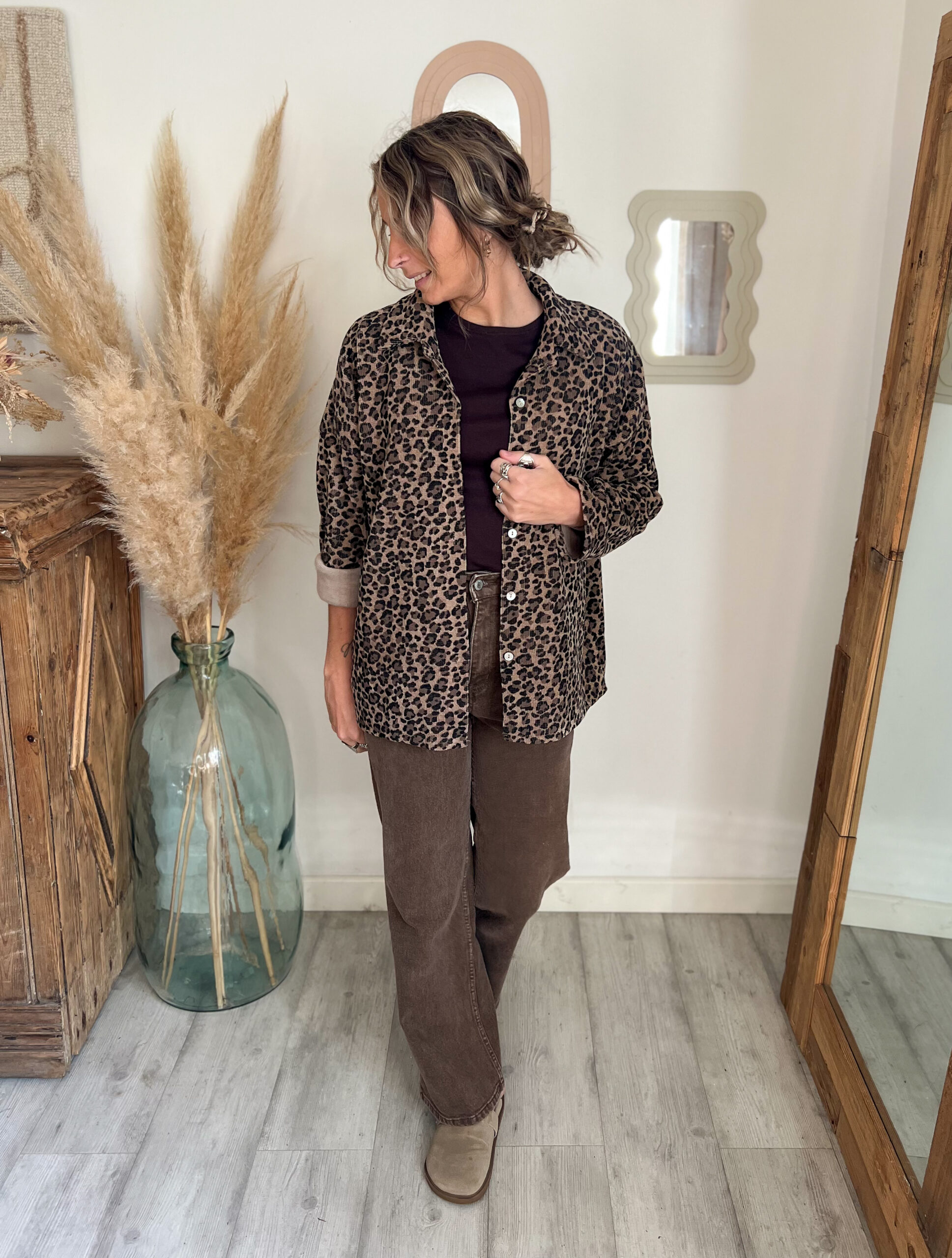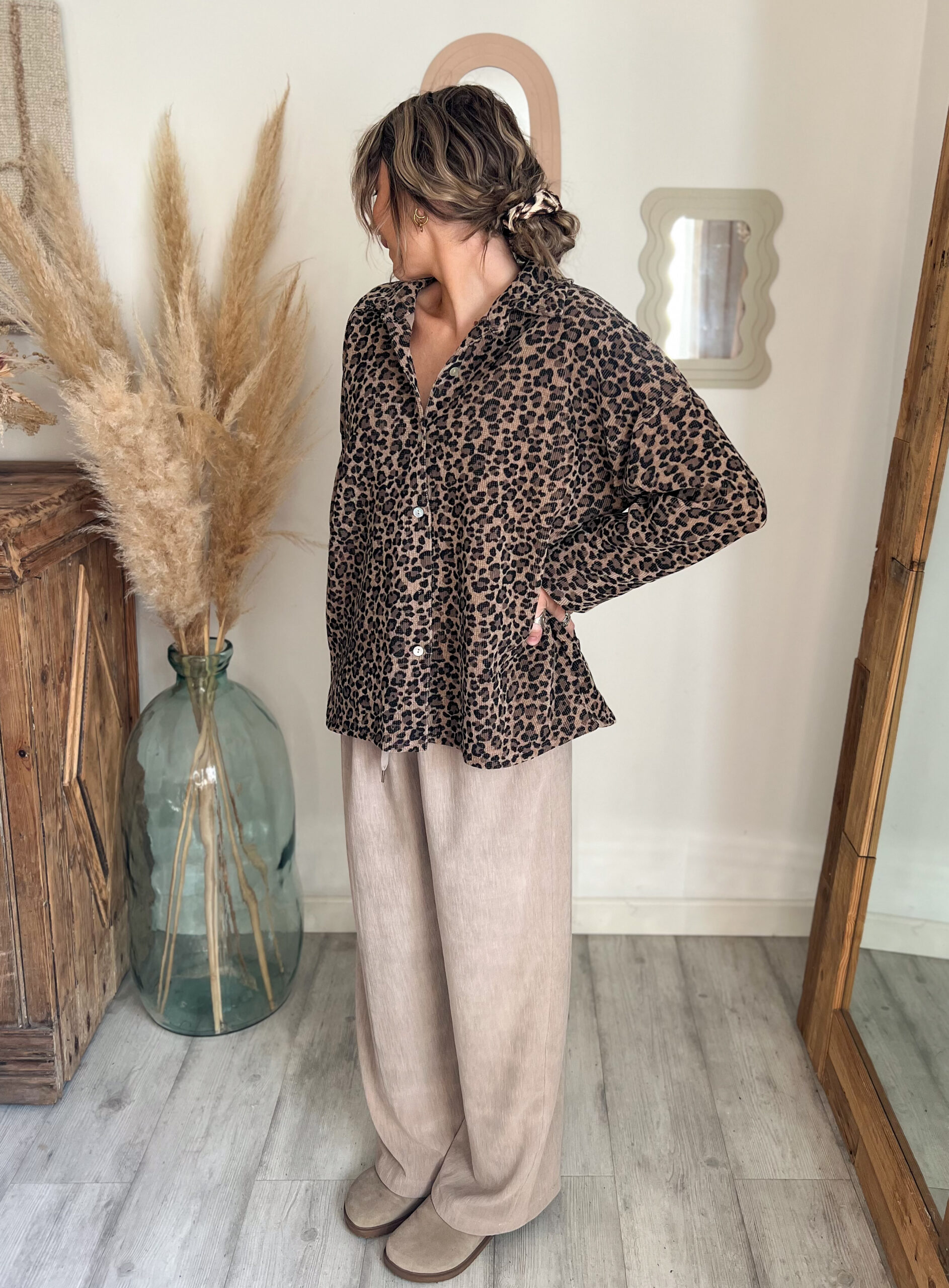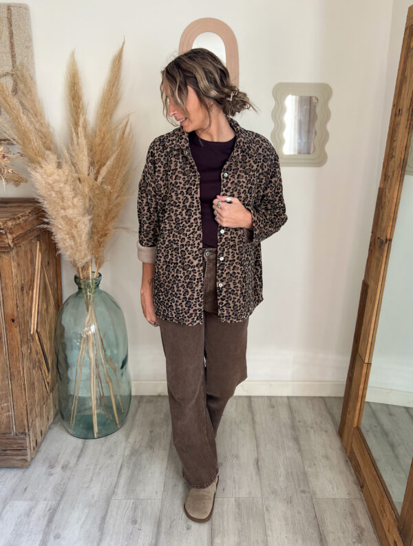 ✨ Retrouvez la chemise léopard velours moka portée en vidéo et associée à différents looks sur Instagram @moonbow.eshop.