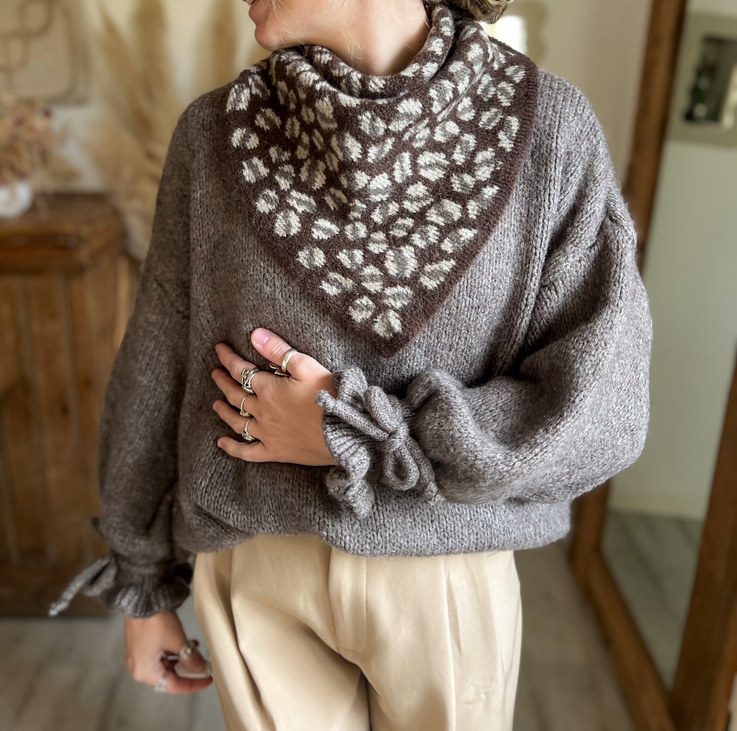 Maille épaisse, forme triangulaire et deux couleurs canon : beige ou chocolat.