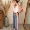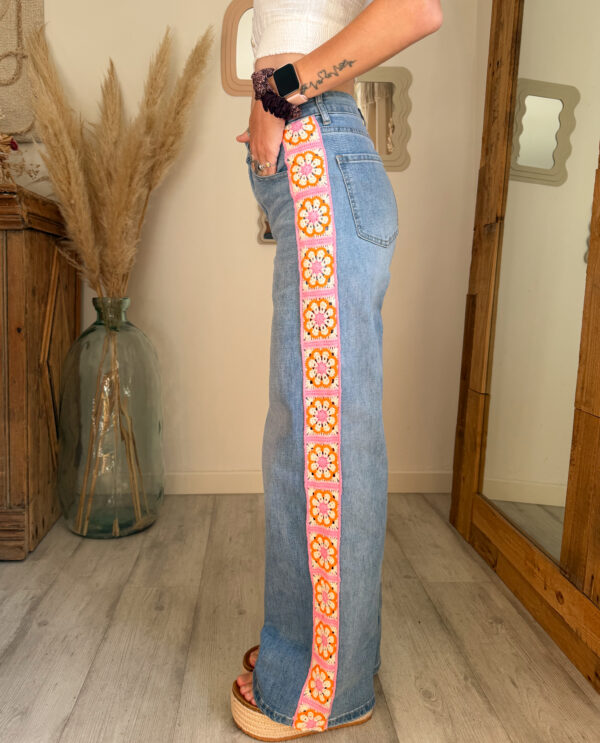 Le jean SUNRISE revisite le denim avec une jolie touche bohème grâce à sa bande fleurie brodée sur le côté.