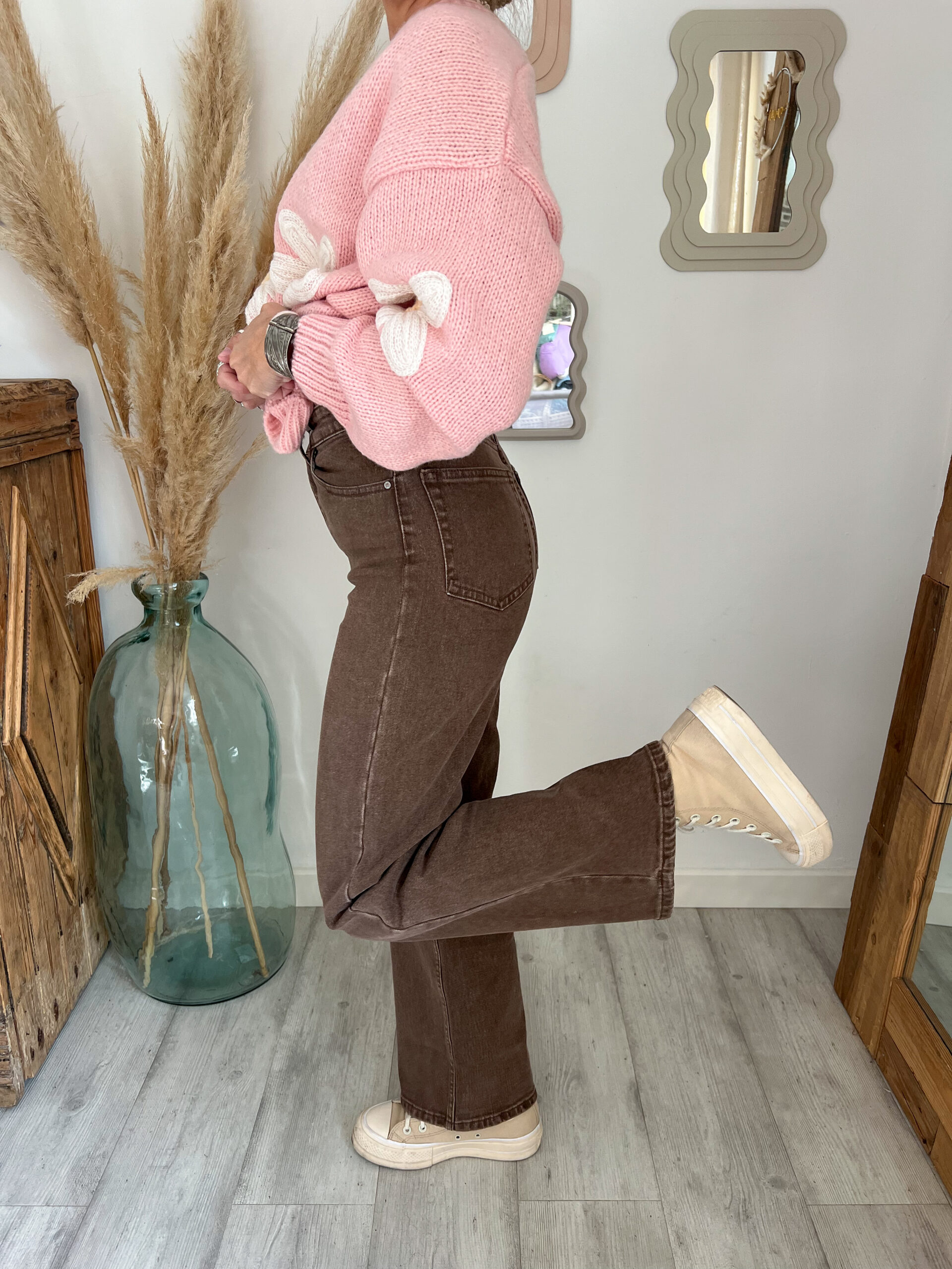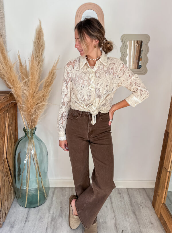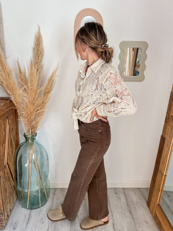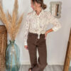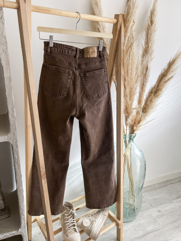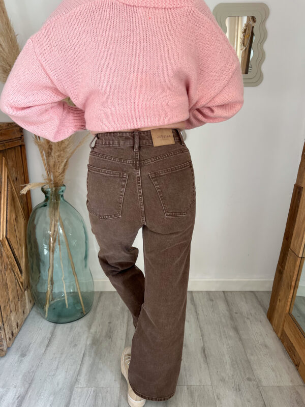 Avec sa teinte marron chaude, ce jean s’accorde aussi bien avec les couleurs claires que les tons plus automnaux. Sa taille haute souligne joliment la silhouette tout en assurant un confort optimal.