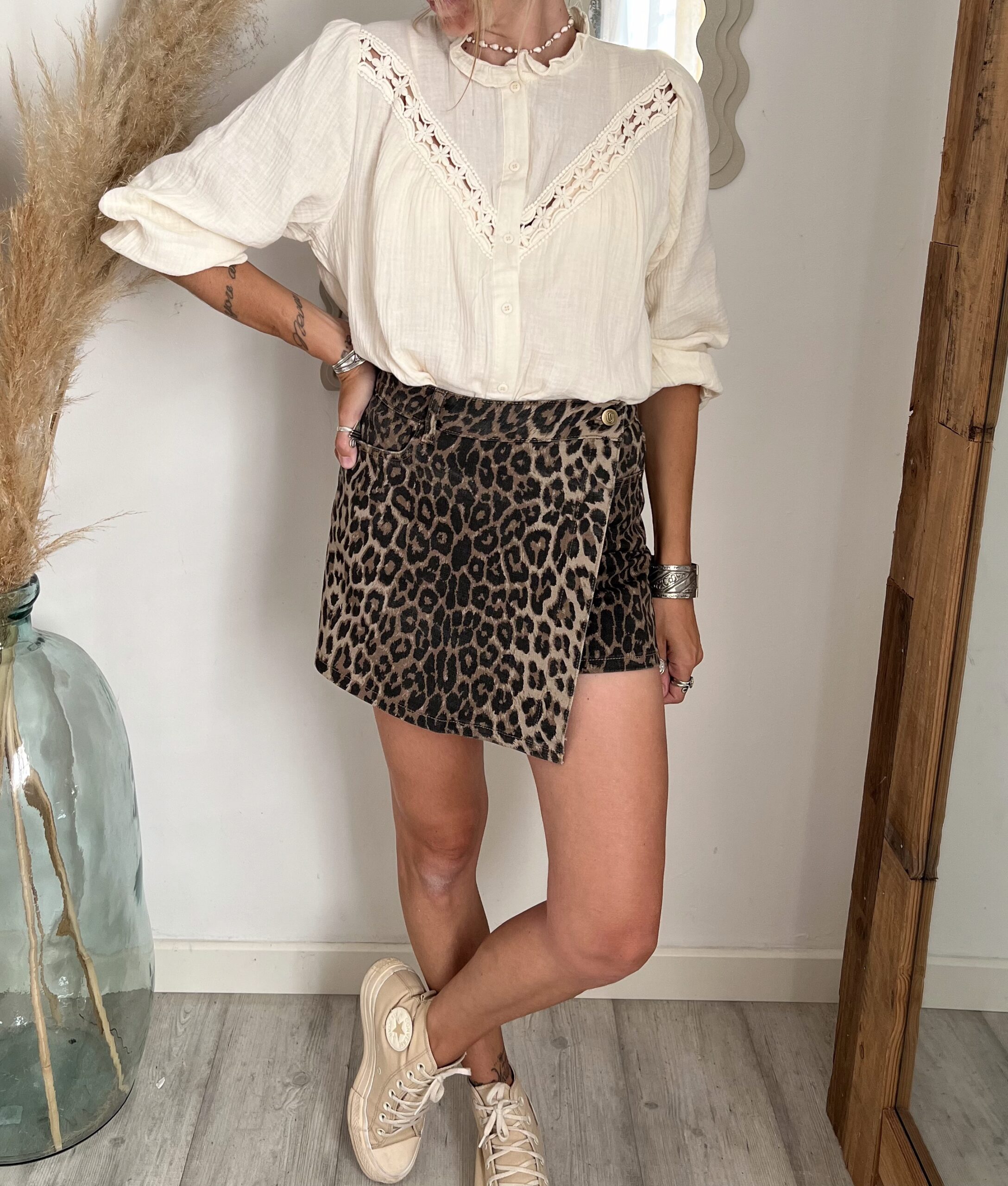 La jupe-short NAYA léopard femme est une pièce phare qui traverse les saisons. Elle se combine aussi bien avec des baskets décontractées qu’avec des sandales féminines pour un style affirmé et polyvalent.