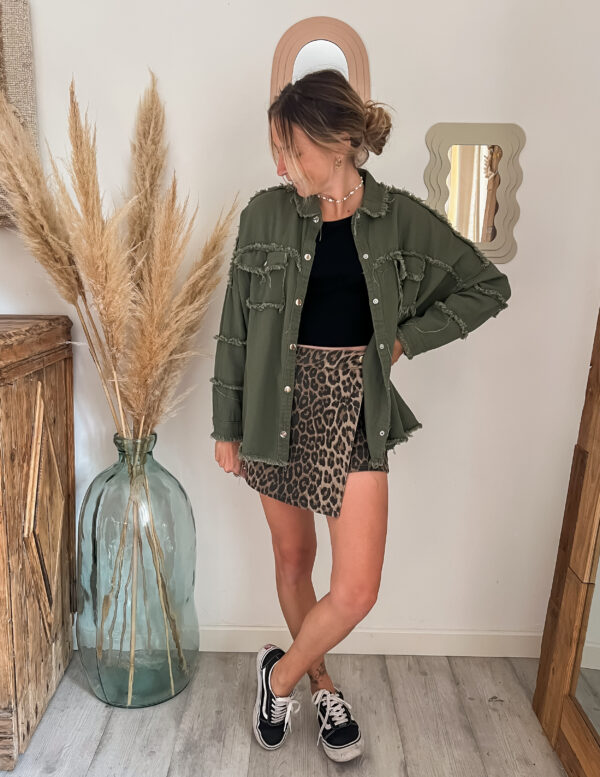 La jupe-short NAYA léopard femme denim tendance est une pièce forte de la collection Moonbow. À la fois moderne et audacieuse, elle allie confort et allure sauvage. Sa coupe flatteuse et son imprimé léopard en font un basique revisité, facile à porter et à associer.