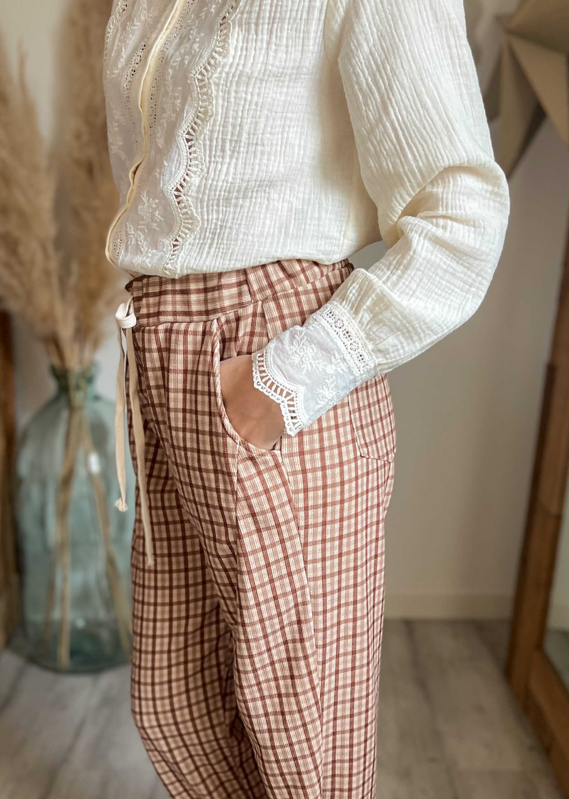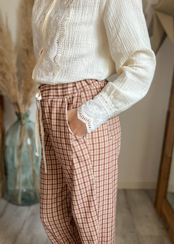 Côté chaussures, ce pantalon carreaux velours femme s’adapte à toutes les envies : baskets pour un look casual, boots pour une allure plus affirmée ou encore mules pour un esprit bohème chic. C’est une pièce facile à vivre, que l’on peut porter au quotidien sans jamais se lasser.