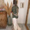 Le pantalon crochet bohème femme ALIAH est la pièce idéale pour celles qui aiment composer des looks variés tout en gardant une base forte et stylée. Entre confort, originalité et esprit bohème chic, il s’impose comme un indispensable du dressing.