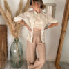 Le pantalon SAËL s’accorde avec presque tout : il se porte aussi bien avec une chemise dentelle comme la chemise Eline pour un rendu délicat et féminin, qu’avec un pull plus graphique comme ARIA pour un contraste moderne. Il s’associe aussi parfaitement à la surchemise Solara aussi bien en kaki qu’en marron, pour un style automnal plus affirmé.