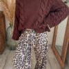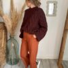 Sa teinte chocolat intense, profonde et légèrement chaude, sublime toutes les carnations et s’accorde à merveille avec les coloris naturels de la collection Moonbow. Porté avec un pantalon Sael en maille, il crée un total look cocooning. Avec le pantalon Nayla à imprimé léopard, il gagne en caractère. Associé au pantalon Noa en velours côtelé crème, il joue sur les contrastes de texture pour un effet à la fois doux et structuré.