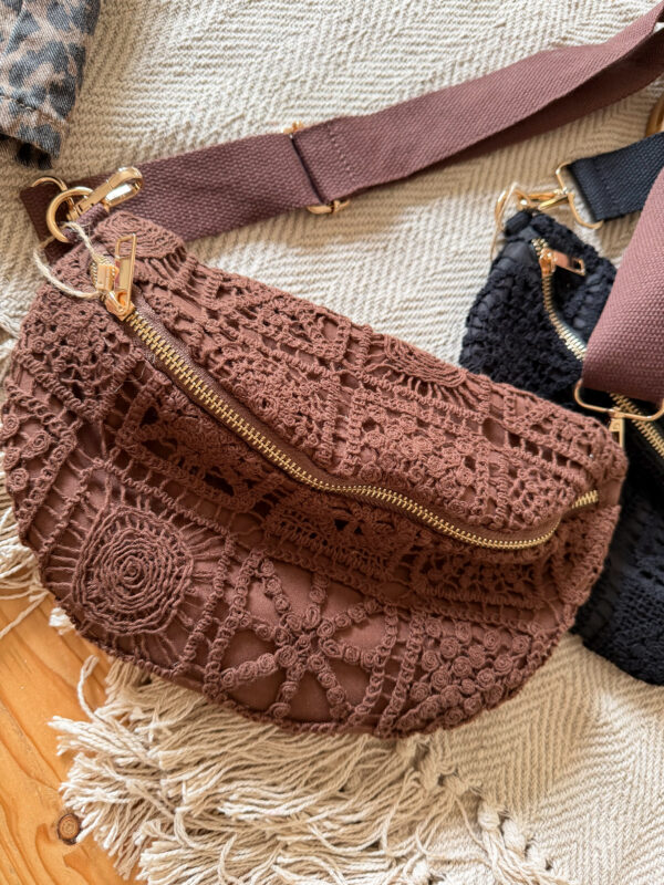 Le sac banane est aujourd’hui devenu un véritable incontournable de la mode. À la fois pratique et tendance, il permet de garder les mains libres tout en restant stylée. Avec sa dentelle délicate et son esprit bohème, ce modèle revisite cet accessoire iconique avec beaucoup de caractère.