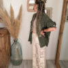 Polyvalente, elle peut se porter avec un simple débardeur et un jean, ou venir structurer une tenue plus habillée. Sa teinte kaki intemporelle est facile à associer et s’intègre dans toutes les garde-robes, du style casual au look plus travaillé.