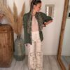 Côté style, cette surchemise bohème femme kaki se mixe facilement avec vos pièces préférées. Elle s’associe parfaitement avec le pantalon crochet ALIAH pour un look bohème complet et texturé. Pour un style plus audacieux, optez pour un pantalon léopard ou la jupe-short NAYA léopard qui viennent casser le côté naturel avec une touche wild ultra tendance.