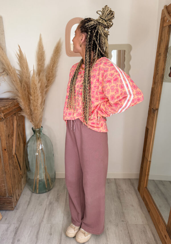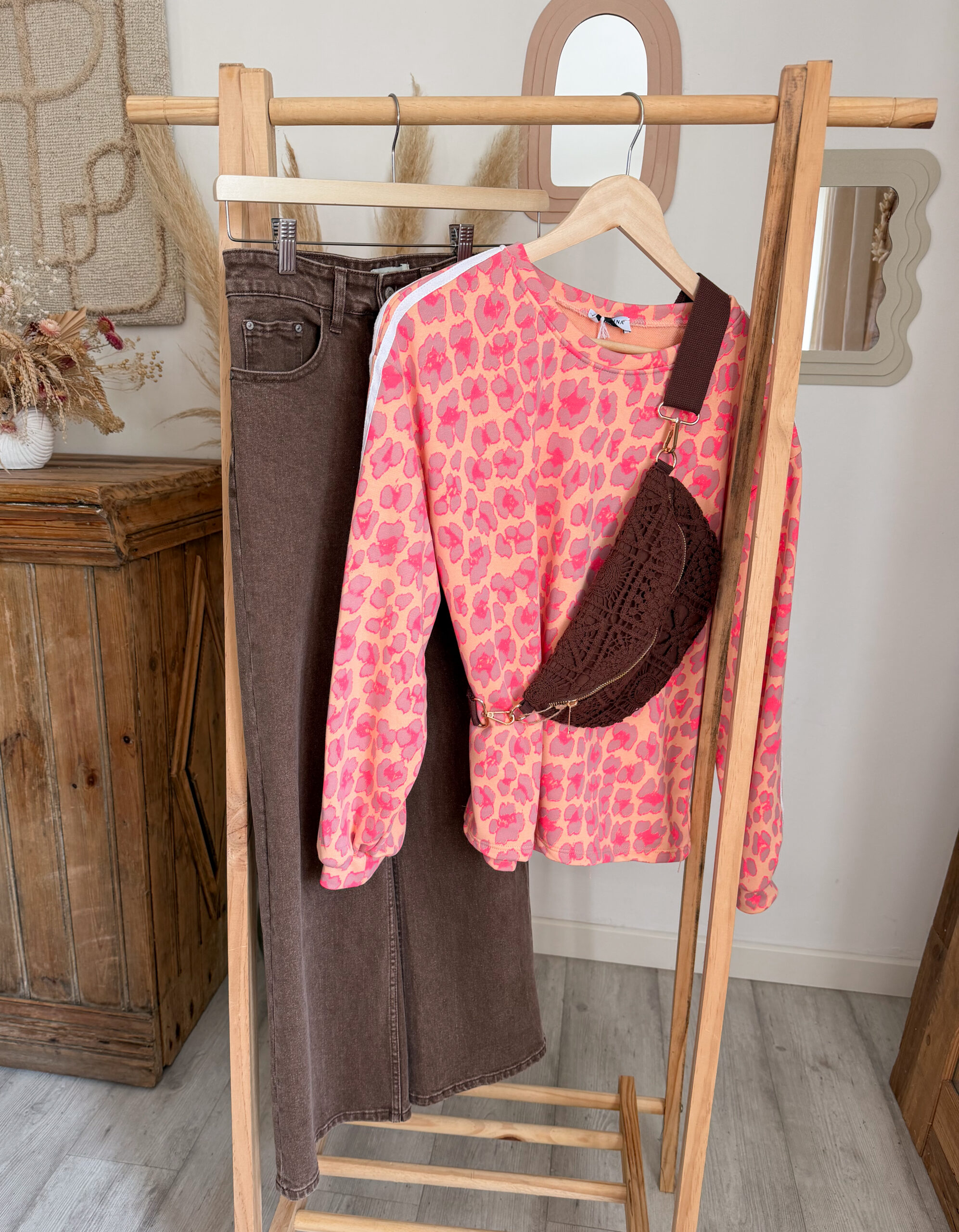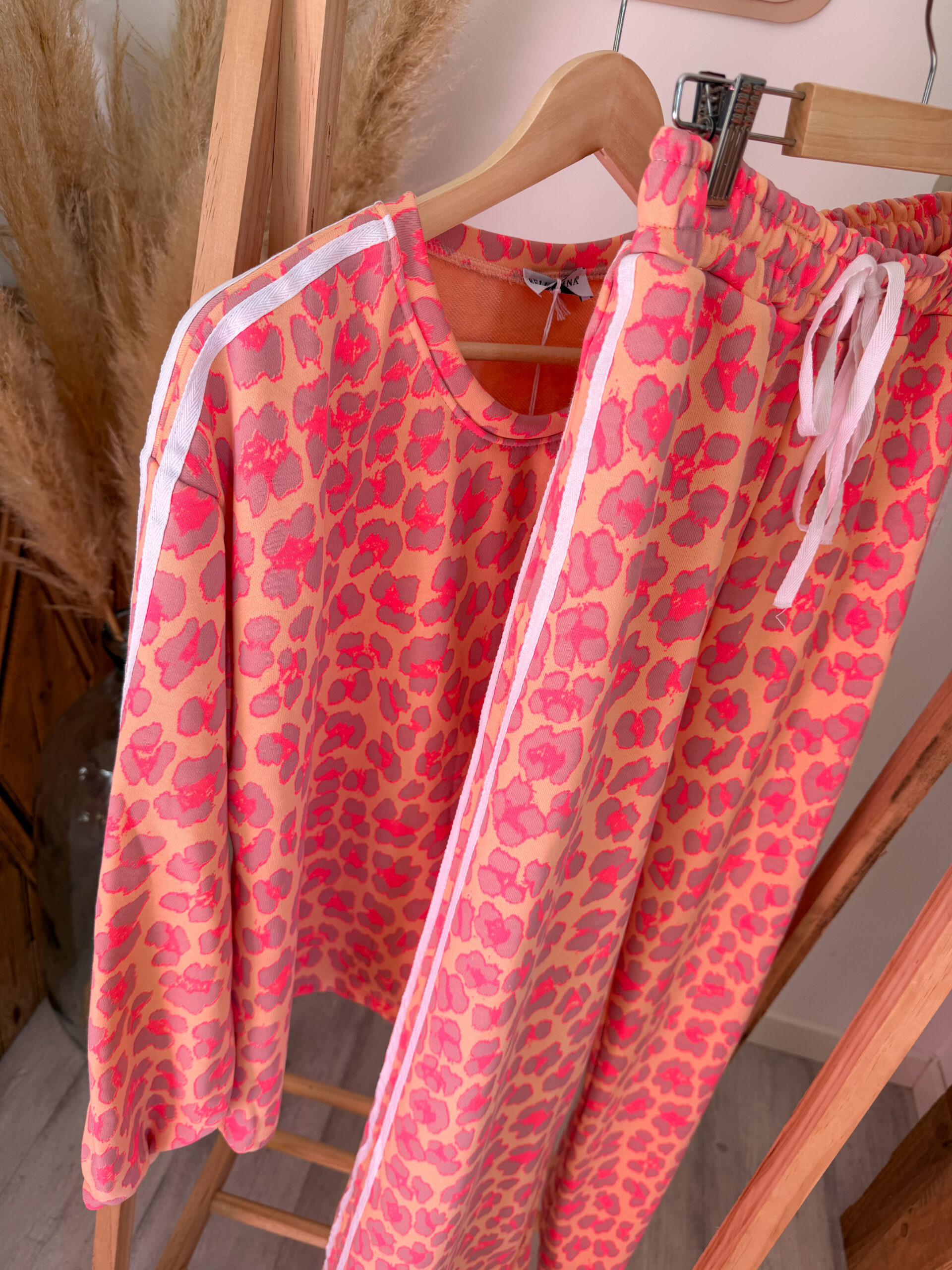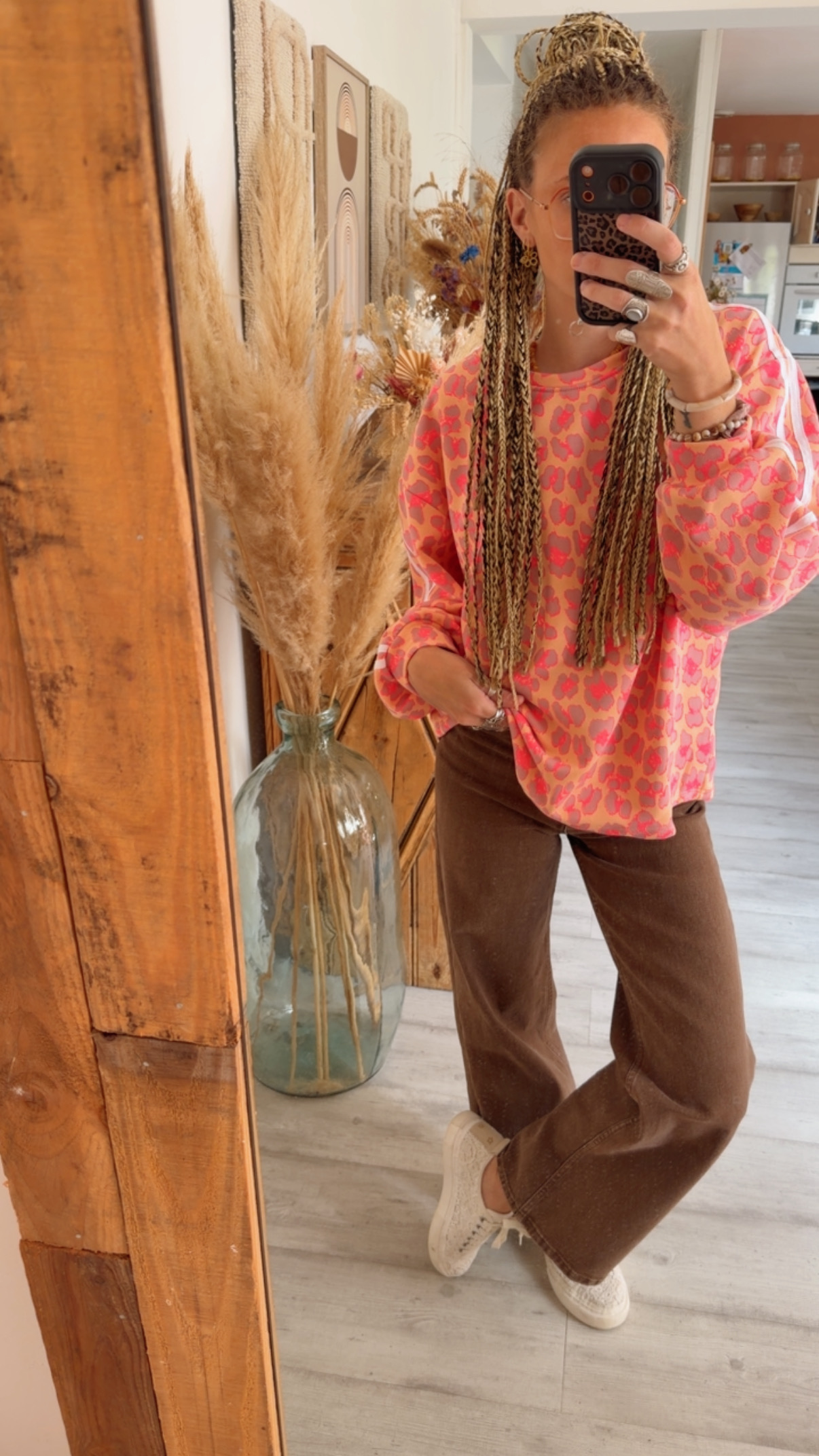 Ce sweat-shirt léopard femme abricot peut se porter de différentes façons selon l’envie. Pour un look affirmé et ultra tendance, il se porte parfaitement avec le pantalon Nino assorti pour un total look léopard très mode. Cet ensemble crée une silhouette forte, idéale pour se démarquer.
