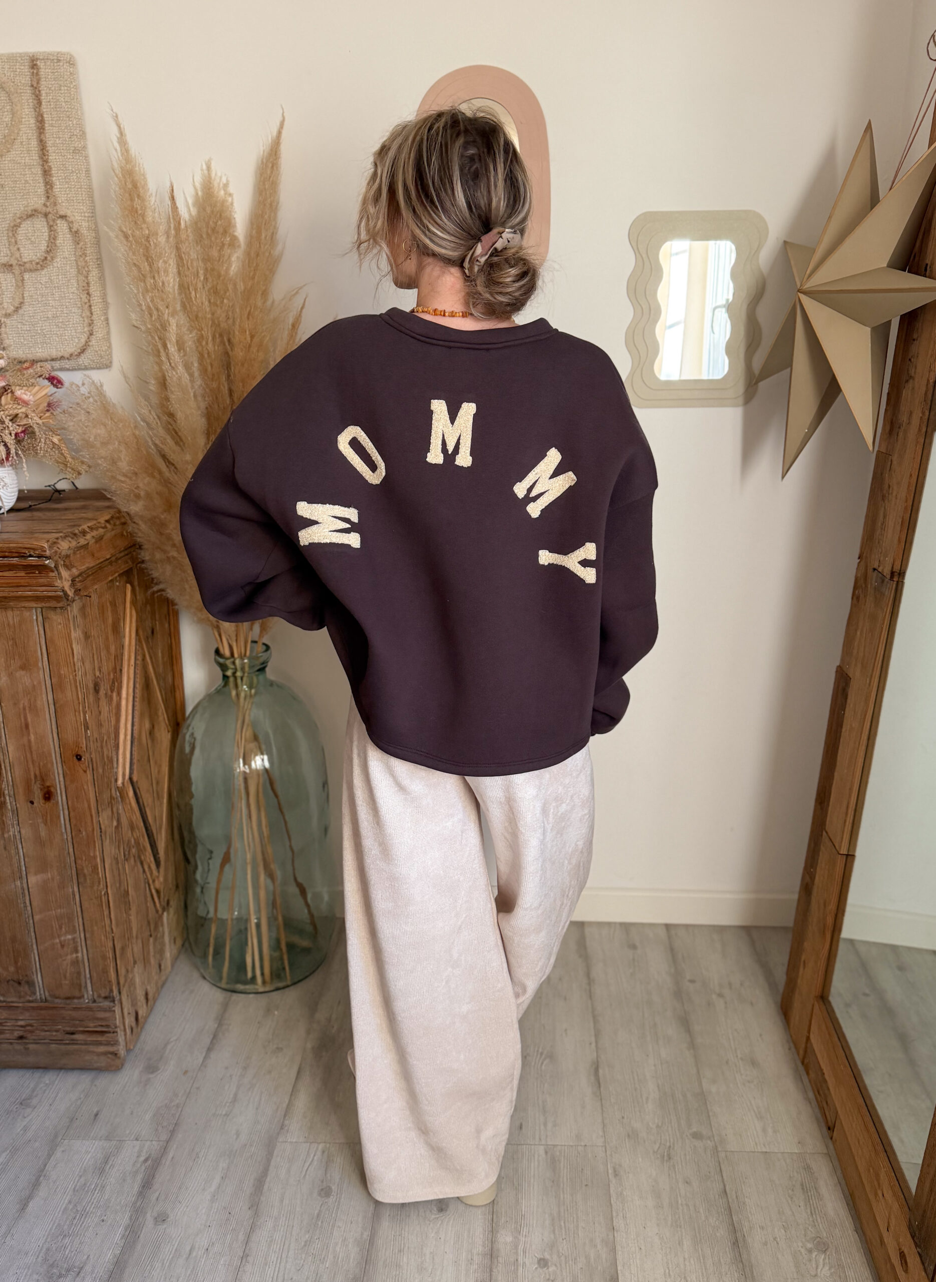 Le détail qui fait toute la différence : le mot “Mommy” en relief bouclette dans le dos, en relief, apportant une touche graphique forte tout en restant douce et élégante. Un message discret mais affirmé, qui donne tout son caractère à ce sweat-shirt sans en faire trop.
