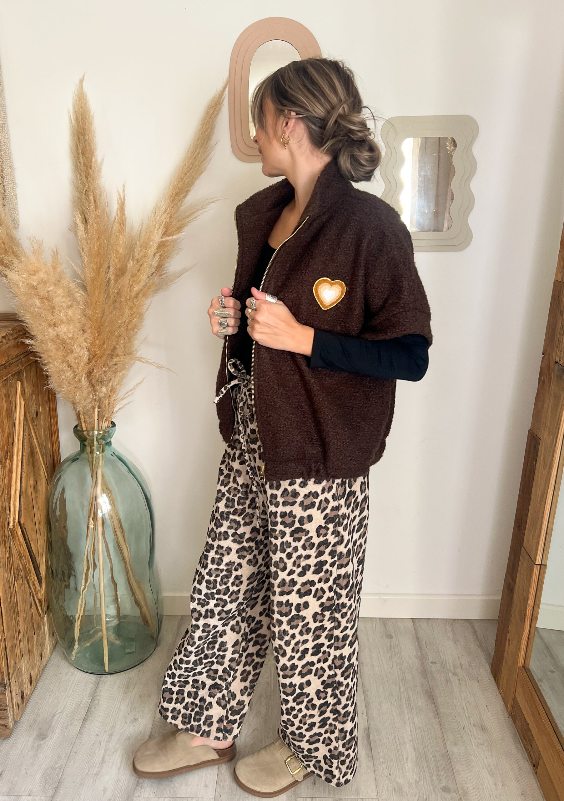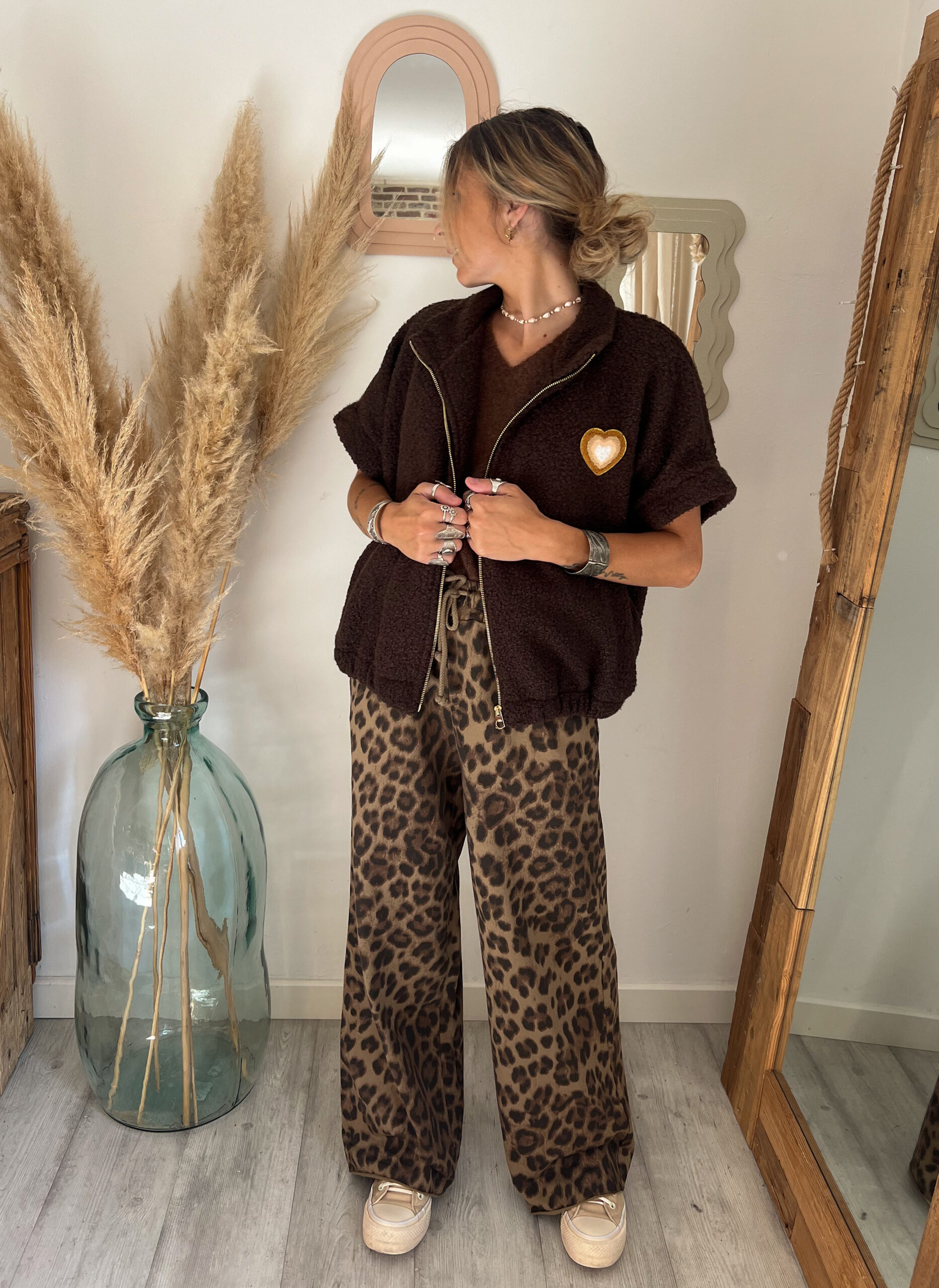 Côté associations, elle se mixe à merveille avec le pantalon NAYLA léopard pour un contraste audacieux et tendance.
