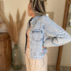 Facile à porter en toutes saisons, elle peut être glissée sur un top, un t-shirt ou même une robe pour apporter une touche casual chic. Son denim légèrement délavé lui donne un aspect authentique et facile à assortir avec l’ensemble de votre dressing.